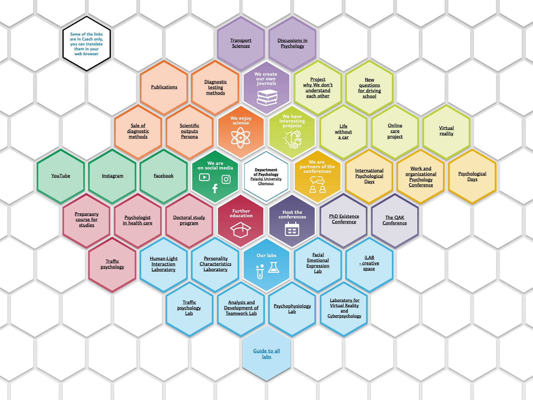 Our department has a long tradition of quality research and has obtained a strong position in the field. The quality of our scientific research, aimed at enriching the psychological sciences, is also clearly stated in the public mission of the department. Research is conducted on many levels at our department. It starts at the basic level, with Bachelor’s and Master’s projects run by students in collaboration with teachers, as is usual at university departments. The next level involves studies of regional significance, supported by grants for both students and academics. The following stage is represented by research projects aimed at achieving an internationally recognized Ph.D. in clinical psychology and educational psychology. Our department also boasts a number of research projects that are connected to international cooperation and have a broad impact.