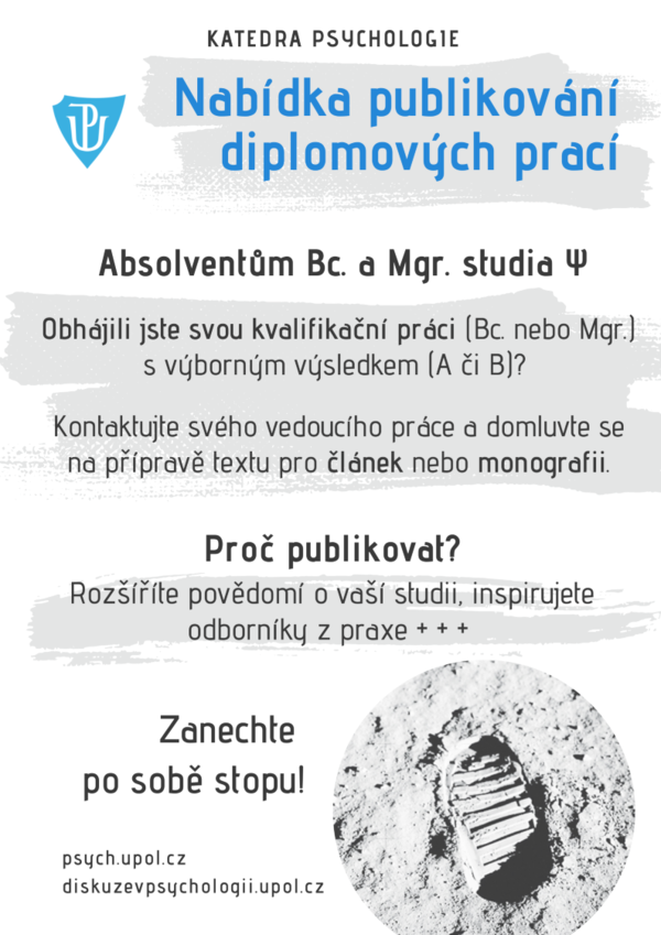 Gratulujeme našim studentům, kteří úspěšně obhájili svou diplomovou práci! Aby neskončily kvalitní texty v šuplíku, podporujeme publikování v odborných časopisech i knižní vydání! Obohaťte svět o své poznatky a rozšiřte povědomí o vašem výzkumu!