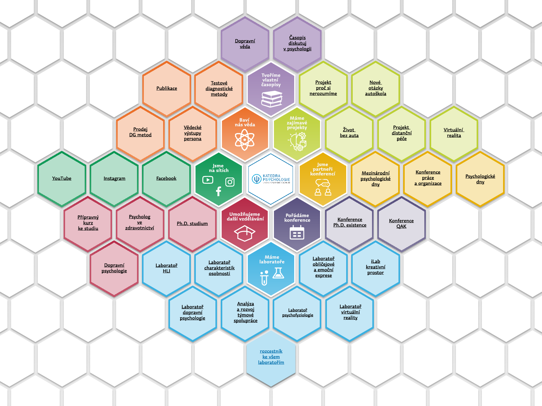 Mezi oblasti výzkumu, na které klade naše katedra mimořádný důraz, patří kognitivní a obecná psychologie, psychologické zkoumání lidské osobnosti a psychopatologie, zkoumání faktorů léčby duševních poruch a psychoterapie, výzkum rodiny a partnerských vztahů, výzkum školního prostředí, výzkum v pracovním prostředí, individuální a skupinová zkušenost v pracovním prostředí a výzkum role lidského faktoru v dopravě.