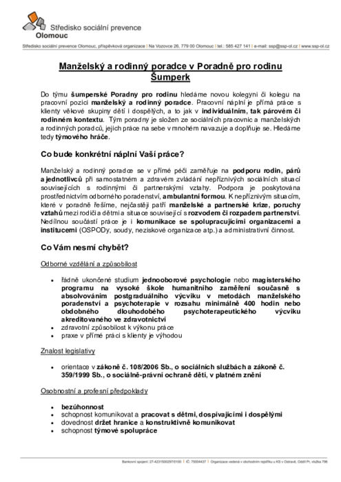 - Podmínkou je ukončené Mgr. vdělání v oboru a kurz psychologa ve zdravotnictví