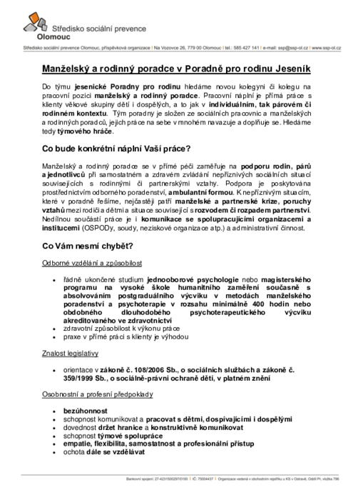 - Výcvik v telefonické krizové intervenci výhodou, ale ne podmínkou